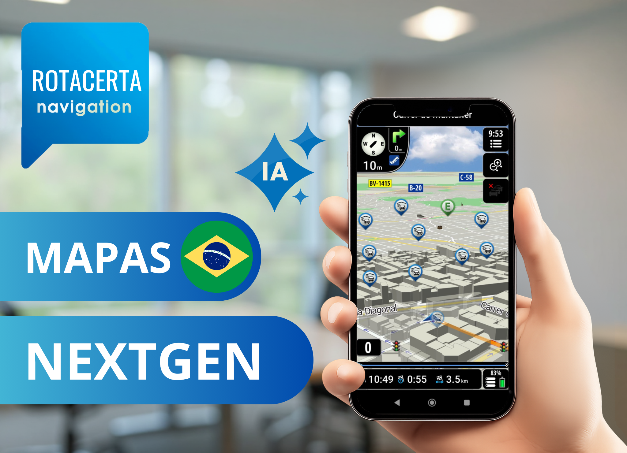- 🤖 Rotas e ruas navegáveis — Navegador otimizado com IA para rotas mais rápidas e precisas.
